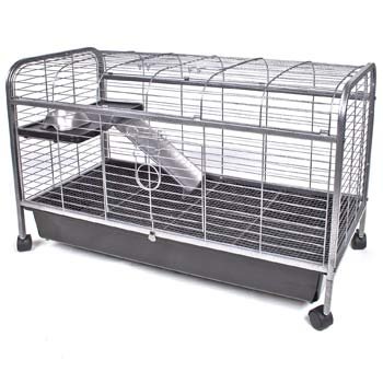 Ware , WARE Living Room Rabbit HomeOur WARE Living Room Rabbit Home offers the ultimate in pet comfort, safety, and convenient cleaning. This small animal home is constructed with high quality steel that is designed to last. Baked on safe Enamel Hammertone Silver coating provides a decor finish that looks good anywhere. Includes a front access door with a secure locking latch and top access through another door or simply lift the entire top! Either the front or top doors allow for plenty of room to place litter pans, toys and other accessories in and out easily. This small animal home also includes the flexibility of using or removing the mesh grill. (For some pets, like guinea pigs, it is recommended not to use a grill) Other features include a pull out durable deep tray base for easy cleaning, flat surface adjustable shelf and ramp for comfort and safety, rolling castors with the ability to lock in place and a food dish. Your furry friend will love his or her Living Room Home, and you will appreciate the clean, easy-to-maintain pet environment. Ideal for rabbits and other larger sized small animals.If this home is purchased for a guinea pig, it is recommended that the mesh grill is removed.