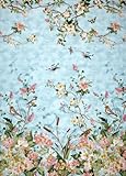 , Designed by Danhui Nai for Wilmington Prints this cotton print features a single border of florals and song birds along one selvedge edge. The depth of the border is 27.25'' at the highest point. Colors include blue green gold pink grey and brown. (Read More)